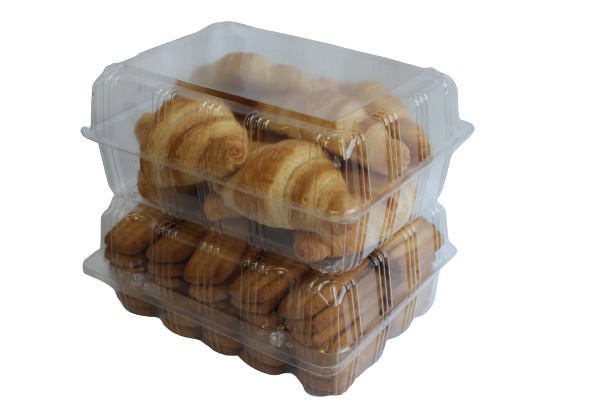 This wider and taller clamshell is perfect for croissants, pound cakes, and larger bakery items.